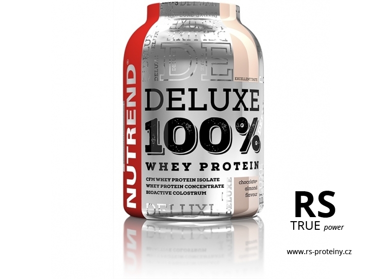 DELUXE 100% WHEY je obohacen o kolostrum, které posiluje imunitní systém a podporuje nárůst svalové hmoty. Odměňte se lahodným proteinem, který jsme pro vás připravili v netradičních příchutích - pudinková vanilka, čokoládové brownies,  čokoláda + lískový ořech, čokoláda + mandle, skořicový šnek, citronový cheesecake, jahodový cheesecake. Volba je jen na vás.