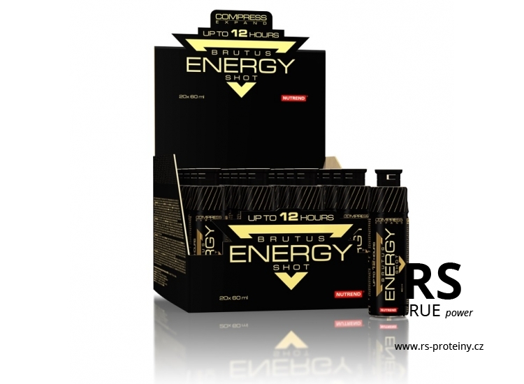 COMPRESS BRUTUS ENERGY SHOT je unikátní mix přírodních bylinných extraktů vitaminů a dalších funkčních látek, které nabudí váš organismus a dodají potřebnou energii.Funkční látky: taurin, ženšen, kofein, L-tyrosin, L-karnitin, synefrin, withanolidy, flavony, vitaminy B2, B3, B5, B6, C, extrakty z rostlin Citrus aurantium, Yerba mate, Withania somnifera, Ginkgo biloba.COMPRESS BRUTUS ENERGY SHOT je určen pro vyčerpaný organismus, při potřebě zvýšit koncentraci.